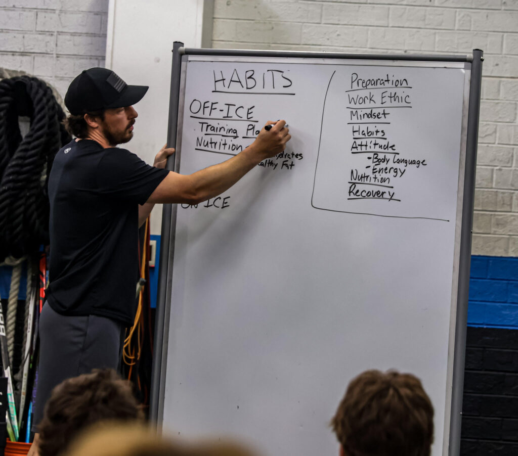 Habits of Hockey was built on the belief that elite performance is earned through daily actions. These actions are the foundation to building habits. The most successful athletes are disciplined, prepared, and intentional with how they train, eat, think, and recover. This approach develops confident players who are prepared for the long-term journey of hockey and life beyond.